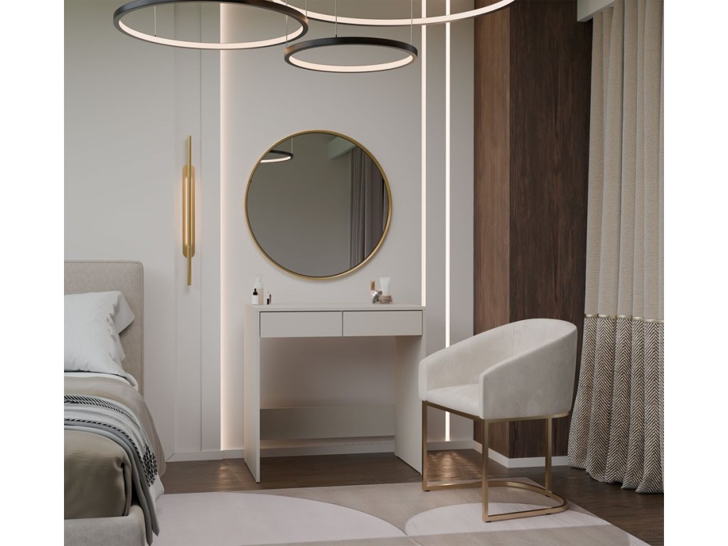 Nadčasový toaletní stolek Marissa je jedinečný kousek - dokonalé řešení pro ty, kteří hledají spojení funkčnosti a estetiky v každém detailu. Díky svým kompaktním rozměrům je ideální volbou i pro menší místnosti, skvěle se hodí do ložnice, pracovny nebo studentského pokoje. Elegantní bezúchytková čela zásuvek zajistí pohodlné používání a dodají moderní vzhled. Nábytek je vyroben z kvalitního lamina, které je snadno udržovatelné a odolné proti oděru.