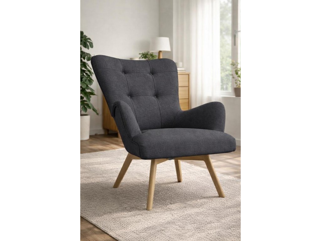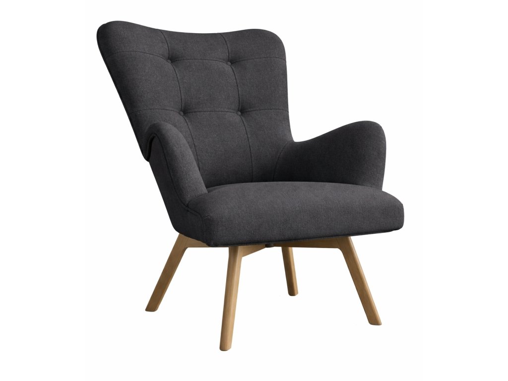 Pohodlné šedé relaxační křeslo ušák René Aston 16 s dřevěnými nohami