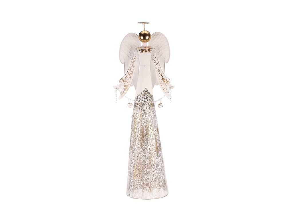 Velký kovový anděl s rolničkami ve stylu XL v bílé barvě je ideální pro ozdobení interiéru během vánoční sezóny. Umístěte jej na stůl, parapet nebo komodu a vytvořte slavnostní atmosféru.
