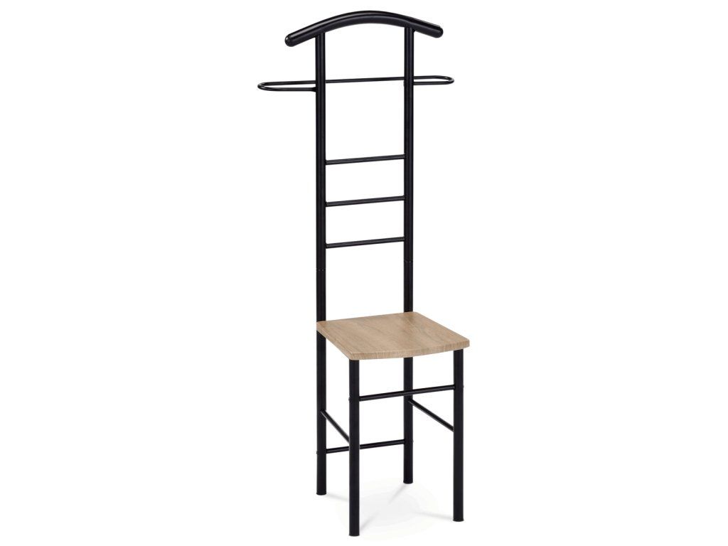 Kovový němý sluha černý 119 cm s MDF sedákem dub sonoma 81870 BK