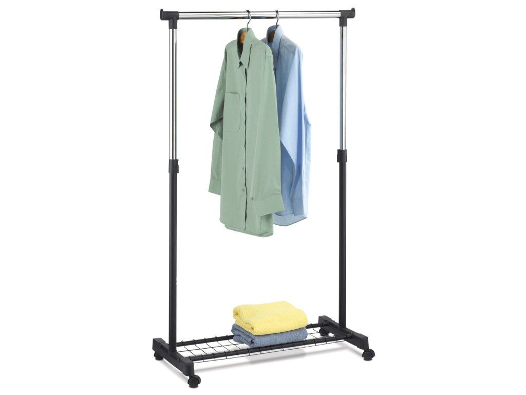 Praktický stojan s jedním ramenem pro zavěšení oblečení. Vhodný do domácností pro rychlé a přehledné uložení svršků.