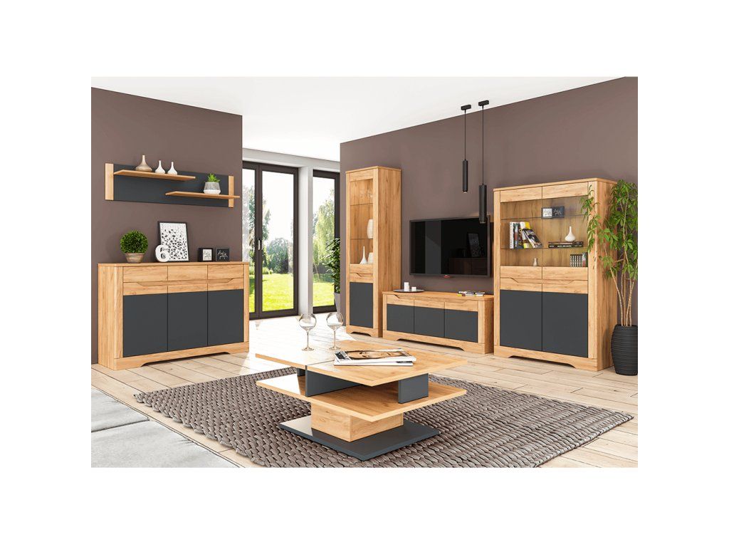 Vitrína A1, levá, dub craft zlatý/grafit šedá, FIDEL