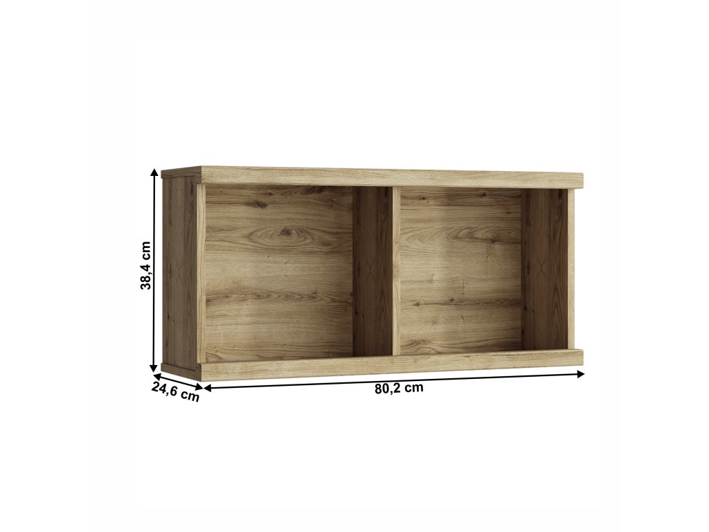 Regál má šířku 80,2 cm, hloubku 24,6 cm a výšku 38,4 cm, což umožňuje efektivní využití prostoru.