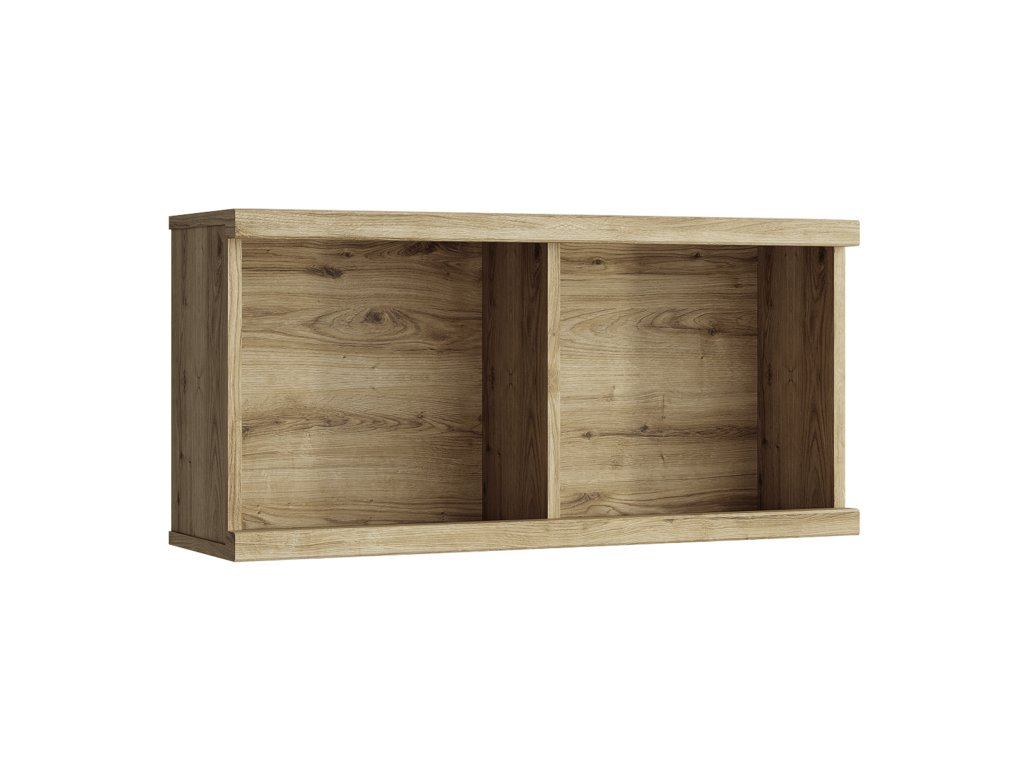 Regál má šířku 80 cm, hloubku 24,6 cm a výšku 38,4 cm. Se středovou příčkou a spodní i vrchní lištou nabízí pevnou konstrukci a dostatek prostoru pro zavěšení a odkládání předmětů.