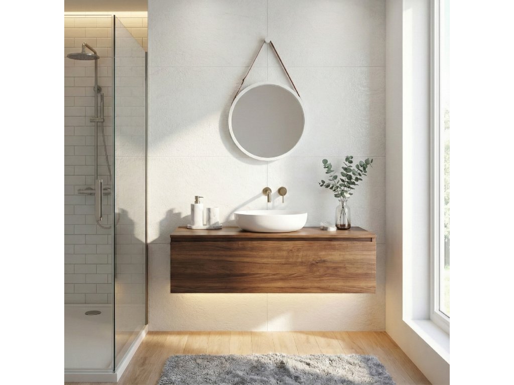 Bambusový rám je odolný a ekologický, bílá barva ladí s různými styly interiéru. Zrcadlo je vhodné i do vlhčích prostor díky lakované úpravě.