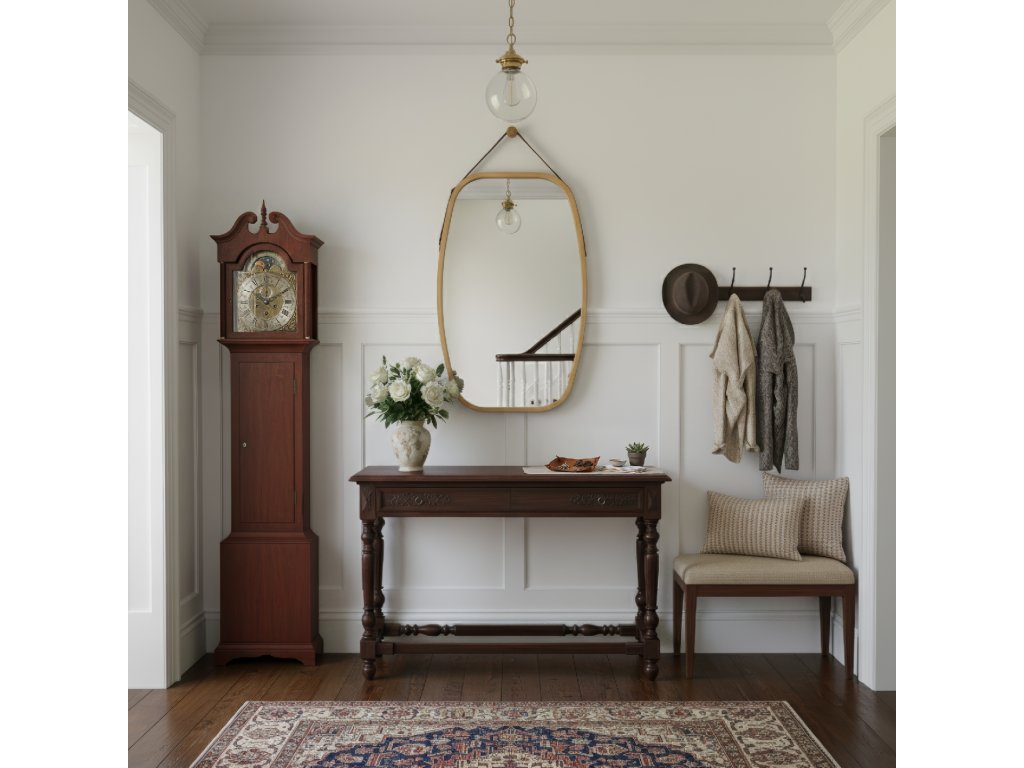 Zrcadlo je vybaveno úchytkou z hnědé ekokůže a dodává se s dřevěným háčkem, který umožňuje snadné a bezpečné zavěšení na zeď.